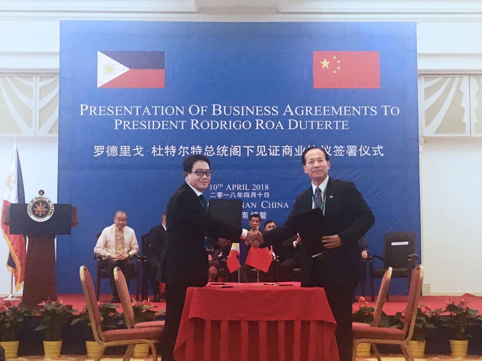 4月10日,九丰集团董事长张建国在海南博鳌与菲律宾相关政府部门签署了关于LNG项目开发的合作协议,菲律宾总统杜特尔特及相关政府部长见证签约。集团LNG事业部总经理孔令华、LNG事业部国际业务总经理路远参加签约仪式。